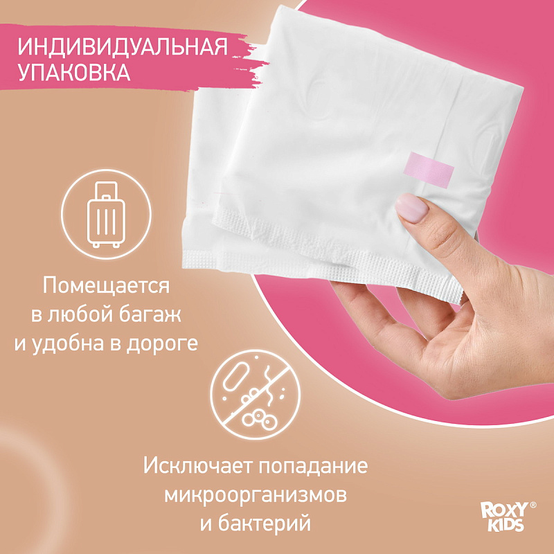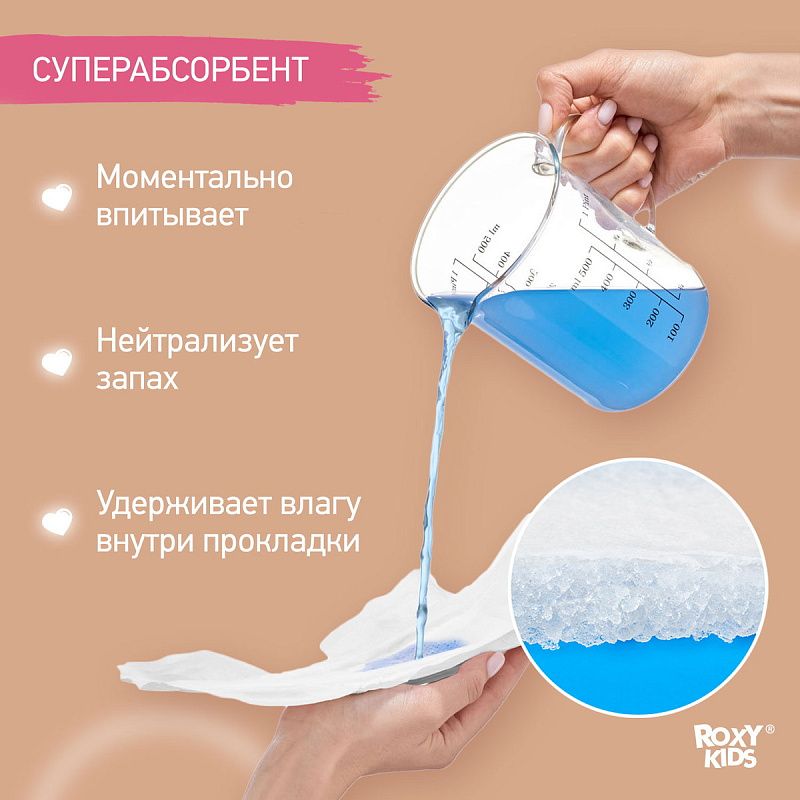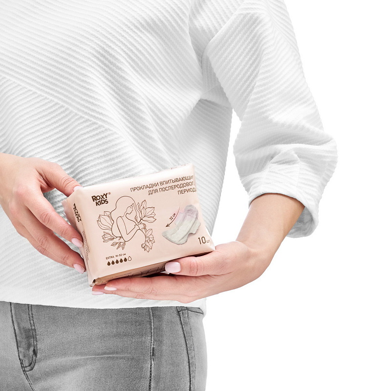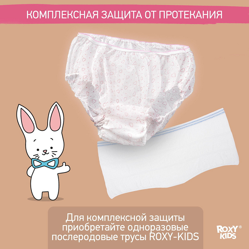 Прокладки ROXY-KIDS разработаны специально для послеродового периода и обладают высокой степенью впитываемости. Суперабсорбент моментально превращает жидкость в гель и нейтрализует запах, а эластичные бортики по краям прокладки предотвращают протекание. Клеевой слой и крылышки обеспечивает надежную фиксацию без сдвигов и скручиваний и позволяют легко закрепить прокладку как на одноразовых трусах, так и на обычном хлопковом белье. Мягкая поверхность и дышащий внешний слой делают использование прокладки абсолютно комфортным. Индивидуальная упаковка защищает изделие от воздействия окружающей среды и удобна для переноски. Рекомендуем использовать прокладки вместе с одноразовыми трусами для роддома от ROXY-KIDS.