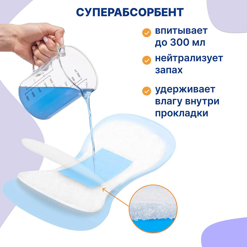 - Усиленный слой суперабсорбента, ультравпитывающие обеспечивают максимальную впитываемость нейтрализуя неприятные запахи