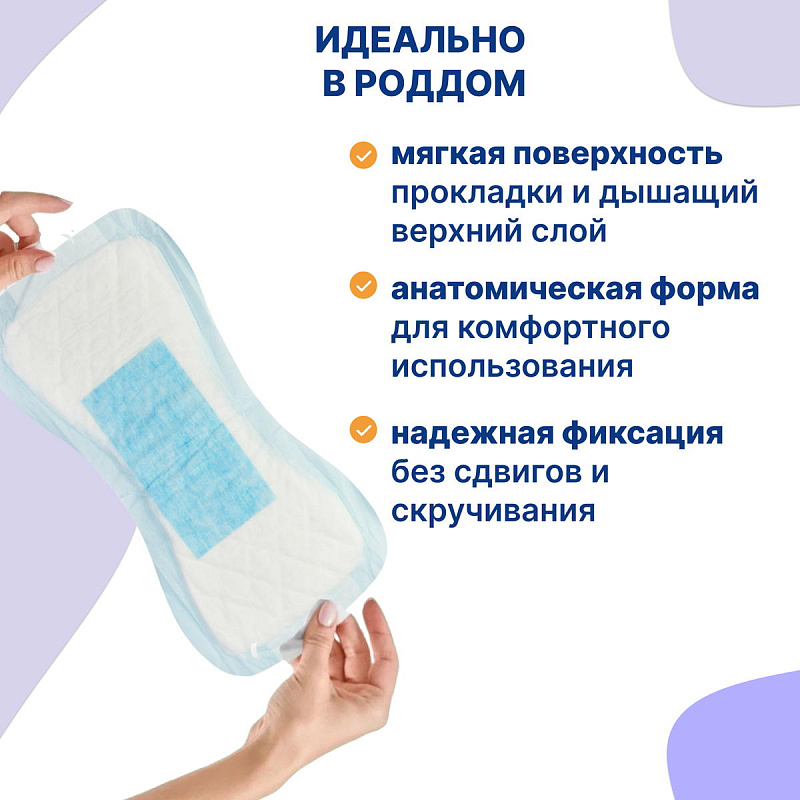Вы готовитесь стать мамой, мы позаботились о вас в самый личный момент. Прокладки послеродовые ультравпитывающие Ultra, с их помощью Вы сможете чувствовать себя защищено и комфортно. Их верхний слой выполнен из нежного и мягкого нетканого материала, который обеспечивает необходимую гигиеничность и формирует микросреду, максимально комфортную для кожи. Анатомическая форма, для более удобного прилегания прокладки к телу и эффективной защиты в послеродовой период, даже в положении лежа. С антибактериальным усиленным слоем который, оказывают длительное антимикробное воздействие и имеет заживляющий эффект. Он не дает размножаться бактериям на поверхности и внутри прокладки, снимая зуд, неприятные ощущения и предотвращая неприятный запах. Увеличенный размер, при этом комфортные с усиленной впитываемостью до 300мл. обеспечивают быстрое и полное впитывание. Благодаря суперабсорбенту исключается вероятность протекания. Клейкие полоски позволяют надежно прикрепить прокладку к нижнему белью.