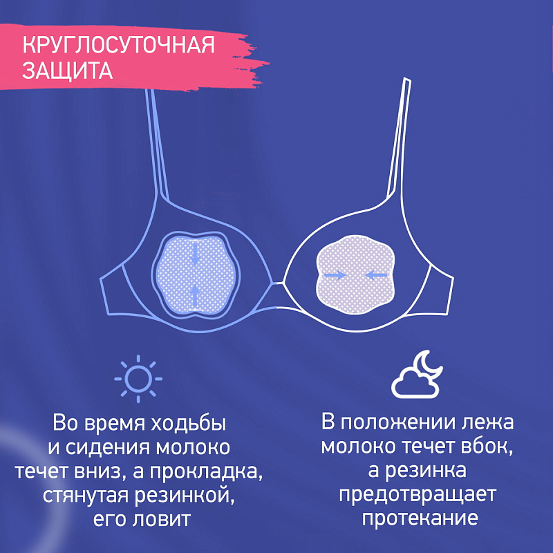 Прокладки для груди являются незаменимым предметом личной гигиены любой мамы. Мягкая текстура волокна с современным суперабсорбентом надежно впитает всю влагу и предотвратит раздражение кожи груди и сосков. Вкладыши удобно крепятся к бюстгальтеру с помощью двойного клейкого слоя, а их объемная форма обеспечит плотное прилегание к груди. Внешняя поверхность препятствует попаданию влаги на одежду и при этом позволяет коже дышать. Каждая прокладка упакована в индивидуальную упаковку для удобного хранения.