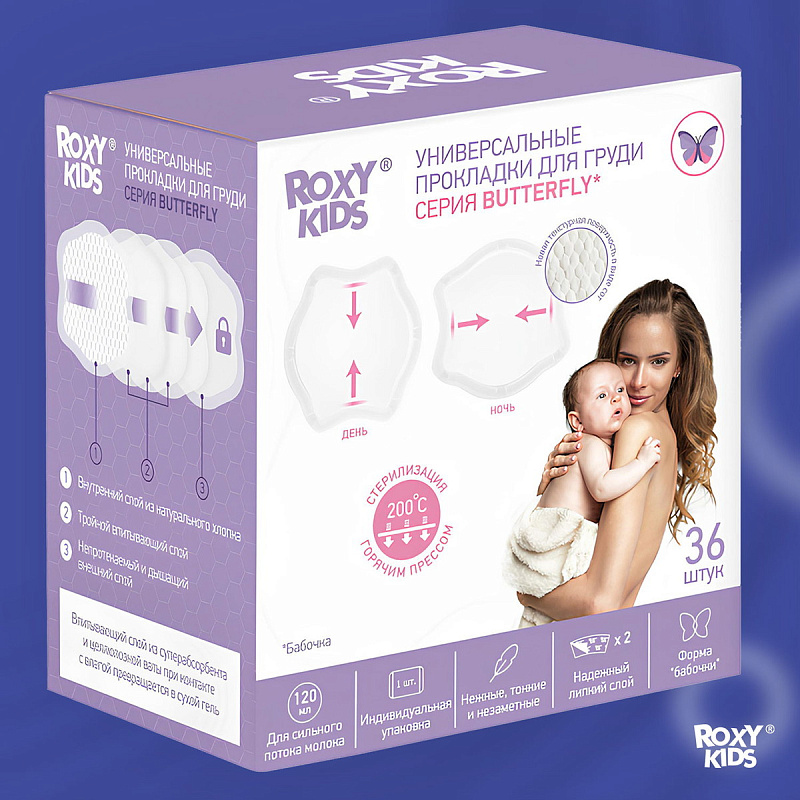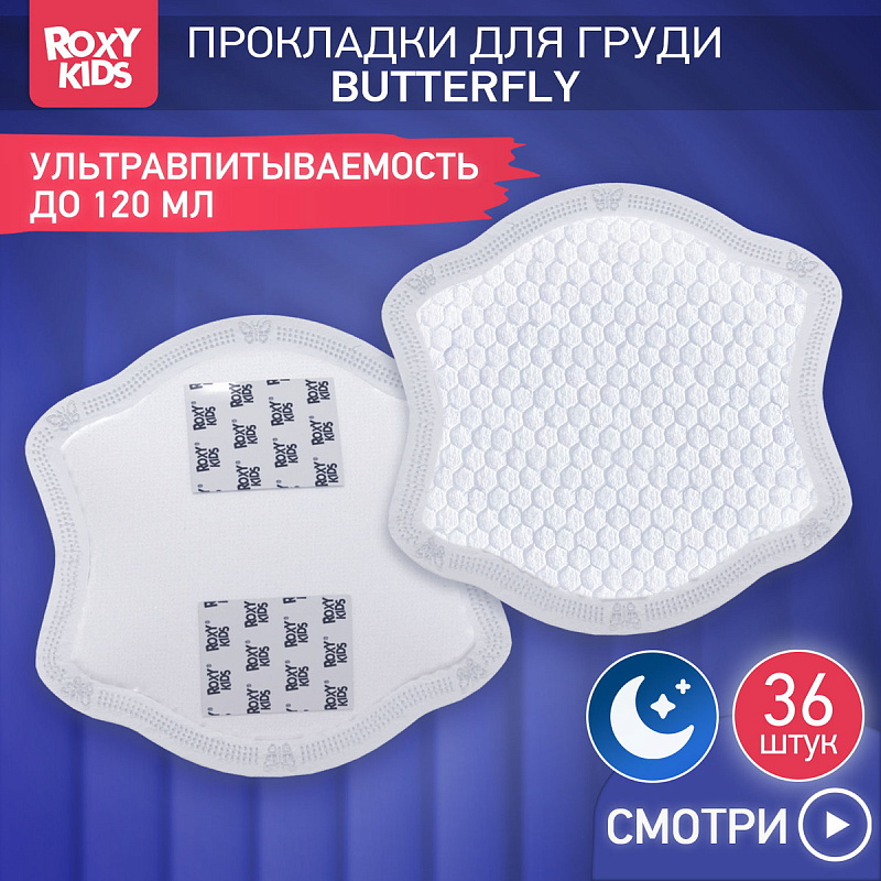 Прокладки Roxy-Kids Butterfly для груди универсальные 120 мл, 36 штук