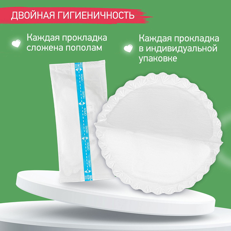 Прокладки для груди являются незаменимым предметом личной гигиены любой мамы. Мягкая текстура волокна с современным суперабсорбентом надежно впитает всю влагу и предотвратит раздражение кожи груди и сосков. Вкладыши удобно крепятся к бюстгальтеру с помощью двойного клейкого слоя, а их объемная форма обеспечит плотное прилегание к груди. Внешняя поверхность препятствует попаданию влаги на одежду и при этом позволяет коже дышать. Каждая прокладка упакована в индивидуальную упаковку для удобного хранения.