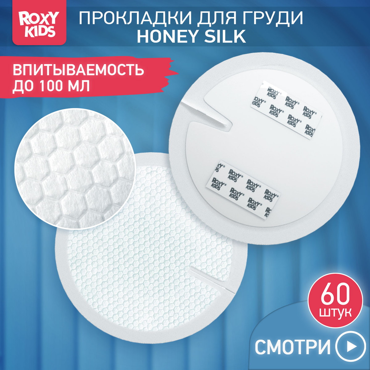 Прокладки Roxy-Kids Honey Silk для груди ультратонкие 100 мл 60 штук