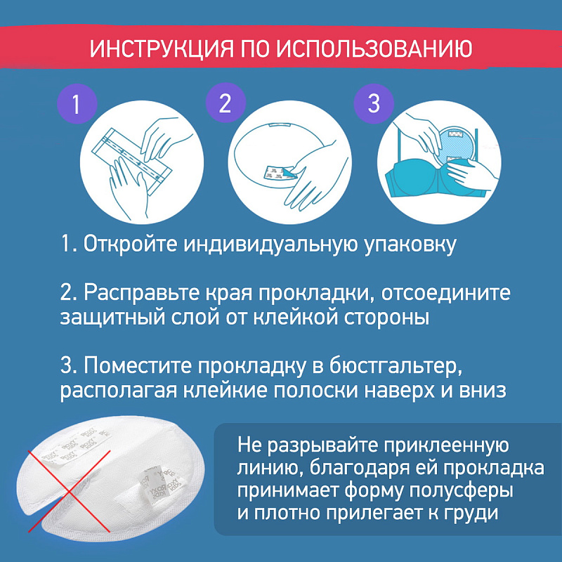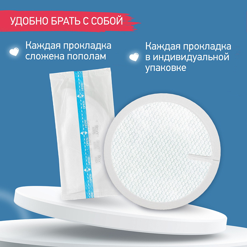 Прокладки для груди являются незаменимым предметом личной гигиены любой мамы. Мягкая текстура волокна с современным суперабсорбентом надежно впитает всю влагу и предотвратит раздражение кожи груди и сосков. Вкладыши удобно крепятся к бюстгальтеру с помощью двойного клейкого слоя, а их объемная форма обеспечит плотное прилегание к груди. Внешняя поверхность препятствует попаданию влаги на одежду и при этом позволяет коже дышать. Каждая прокладка упакована в индивидуальную упаковку для удобного хранения.