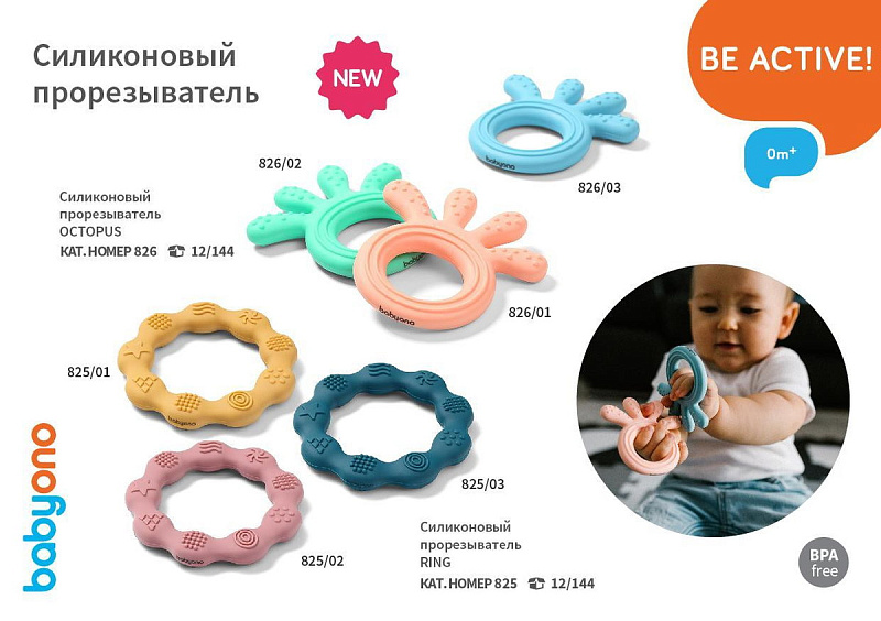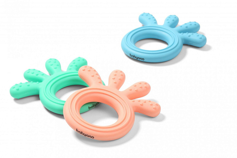 Силиконовый прорезыватель OCTOPUS от BabyOno в виде морского обитателя Осминожки . Прорезыватель создан с учетом маленькой ручки малыша и очень удобен для захвата. Разная рельефная поверхность разработана для массажа десен в период прорезывания зубов. Для уменьшения боли раздражённых десен можно использовать специальный успокаивающий гель или охладить прорезыватель в холодильнике. Прорезыватель имеет не большой размер и вес, его удобно брать с собой на прогулку, а для обеспечения его чистоты и сохранности можно закрепить на держателе для пустышки.