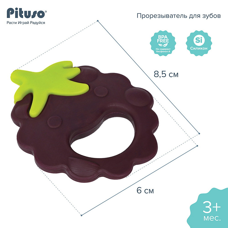 Полностью выполненный из силикона, прорезыватель подходит для использования с самого начала периода прорезывания зубов. Благодаря рельефной поверхности успакаивает и массирует раздраженные десна. Изготовлен из безопасного материала и не содержит вредных веществ. Удобная форма для захвата детской ручкой.