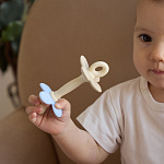 Форма продумана так, чтобы игрушка естественно ложилась в маленькую ладонь и помогала тренировать захват. Лёгкий вес даёт ребёнку уверенность в движении, а матовая нескользящая поверхность усиливает комфорт. Держатель-петелька позволяет закрепить прорезыватель на одежде или коляске — он остаётся рядом, где бы ни проходил день.
