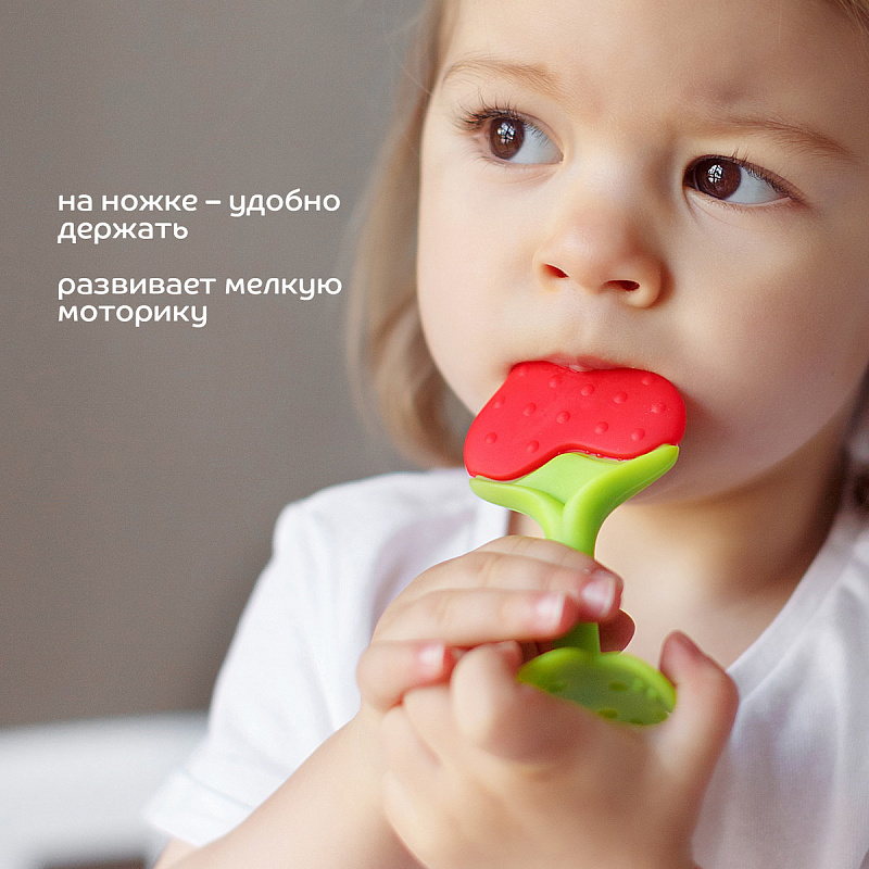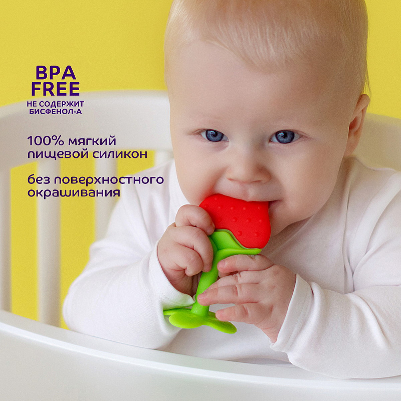 Прорезыватель поможет уменьшить неприятные ощущения во время прорезывания зубов. Полностью выполненный из силикона, прорезыватель подходит для использования с самого начала периода прорезывания зубов. Для достижения дополнительного анестезирующего эффекта можно положить прорезыватель в холодильник на 10 минут. Изготовлен из безопасного материала и не содержит вредных веществ.