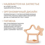 Moyuum – незаменимый помощник в период прорезывания зубов у младенцев. Прорезыватель эффективно устраняет неприятные болезненные ощущения, зуд и дискомфорт. Его выступающие части отлично подходят для мягкого массажа десен. В результате ребенок не сосет пальцы и обучается правильной привычке гигиены полости рта. В то же время милая привлекательная игрушка помогает отвлечь внимание и успокоить малыша, а ее спокойные красивые цвета приятны глазу. Мы разработали прорезыватель специальной эргономичной формы, без каких-либо съемных деталей, что обеспечивает детям полную безопасность. Аксессуар удобно фиксируется на руке и не выпадает из ладошки. Его небольшие размеры и легкий вес оптимальны для маленькой детской кисти. Особый дизайн позволяет чесалке стоять на столе. Жевательная поверхность при этом ни с чем не соприкасается и дольше остается чистой. Изделие изготовлено из премиального платинового силикона, отличающегося стабильностью при разных температурах от -50 до 200°С, поэтому его можно охлаждать и подмораживать. Этот качественный, абсолютно безопасный материал не имеет постороннего запаха и привкуса. Наш силиконовый прорезатель не деформируется, от него невозможно откусить кусочек, его легко мыть и стерилизовать любым способом. Выдерживает обработку в пмм и свч, стерилизацию паром и кипячением. Грызунок – идеальный подарок для новорожденных!