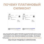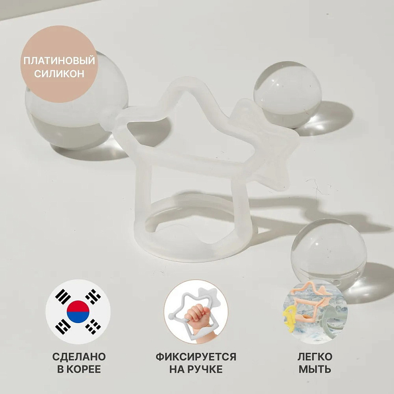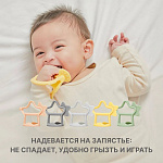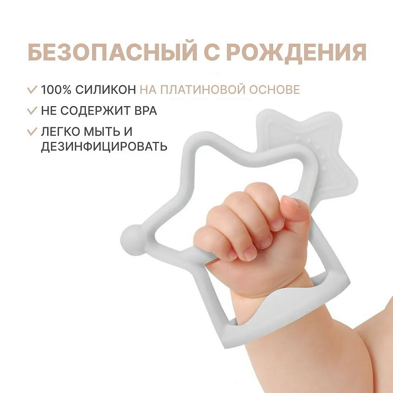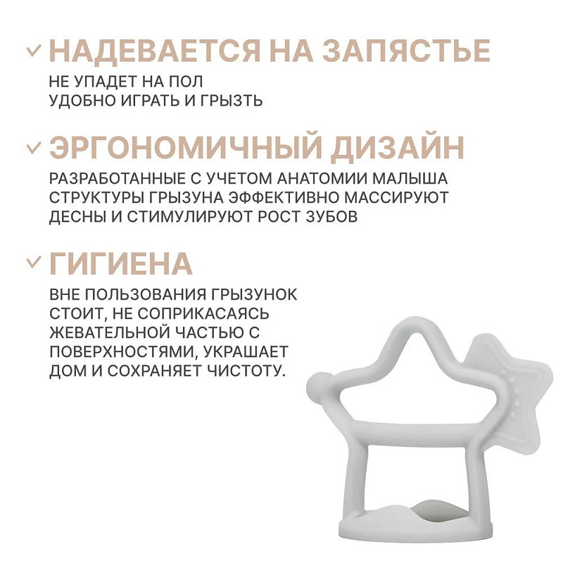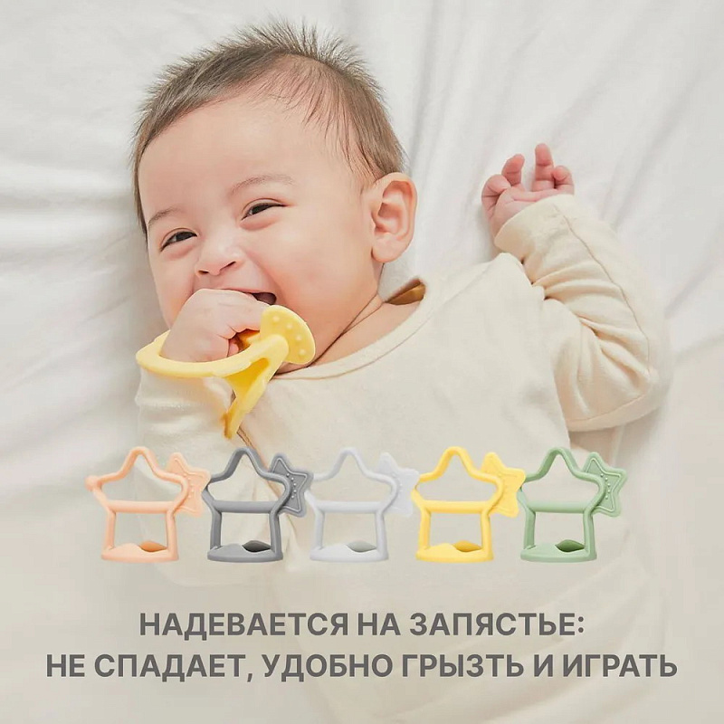 Moyuum – незаменимый помощник в период прорезывания зубов у младенцев. Прорезыватель эффективно устраняет неприятные болезненные ощущения, зуд и дискомфорт. Его выступающие части отлично подходят для мягкого массажа десен. В результате ребенок не сосет пальцы и обучается правильной привычке гигиены полости рта. В то же время милая привлекательная игрушка помогает отвлечь внимание и успокоить малыша, а ее спокойные красивые цвета приятны глазу. Мы разработали прорезыватель специальной эргономичной формы, без каких-либо съемных деталей, что обеспечивает детям полную безопасность. Аксессуар удобно фиксируется на руке и не выпадает из ладошки. Его небольшие размеры и легкий вес оптимальны для маленькой детской кисти. Особый дизайн позволяет чесалке стоять на столе. Жевательная поверхность при этом ни с чем не соприкасается и дольше остается чистой. Изделие изготовлено из премиального платинового силикона, отличающегося стабильностью при разных температурах от -50 до 200°С, поэтому его можно охлаждать и подмораживать. Этот качественный, абсолютно безопасный материал не имеет постороннего запаха и привкуса. Наш силиконовый прорезатель не деформируется, от него невозможно откусить кусочек, его легко мыть и стерилизовать любым способом. Выдерживает обработку в пмм и свч, стерилизацию паром и кипячением. Грызунок – идеальный подарок для новорожденных!