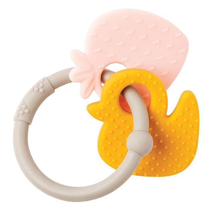 Прорезыватель Nattou Lapidou силикон Клубника и Утка, кольцо grey 879545