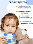 Способствует развитию у малыша хватательного рефлекса и мелкой моторики. С его помощью малыш будет учиться держать и перекладывать прорезыватель из одной ладони в другую.