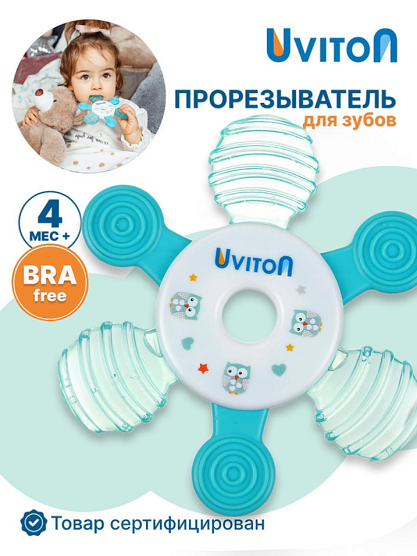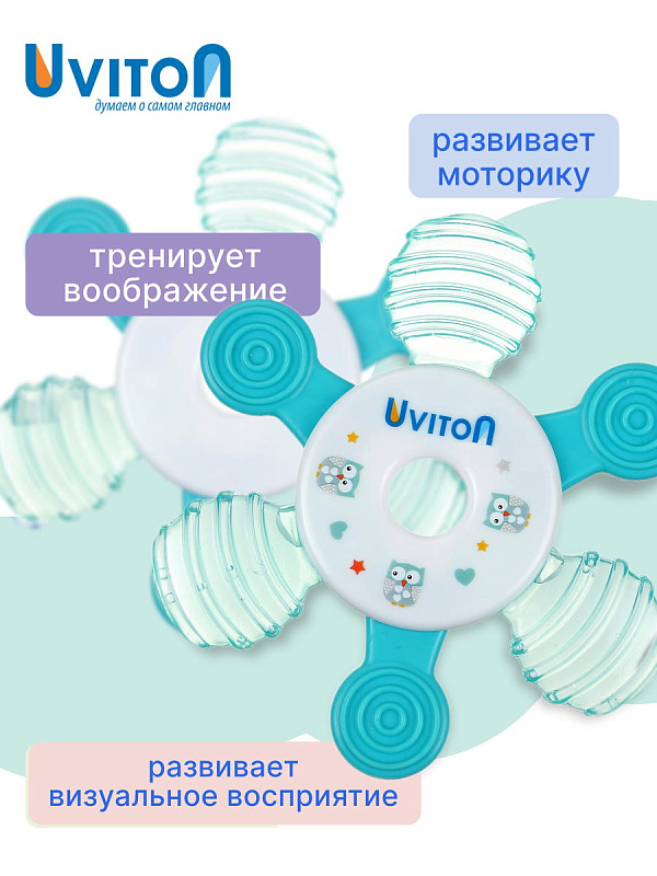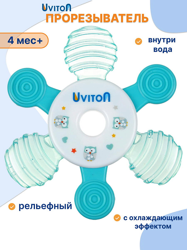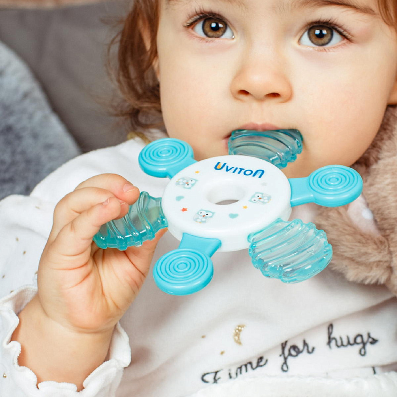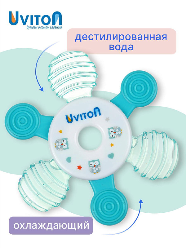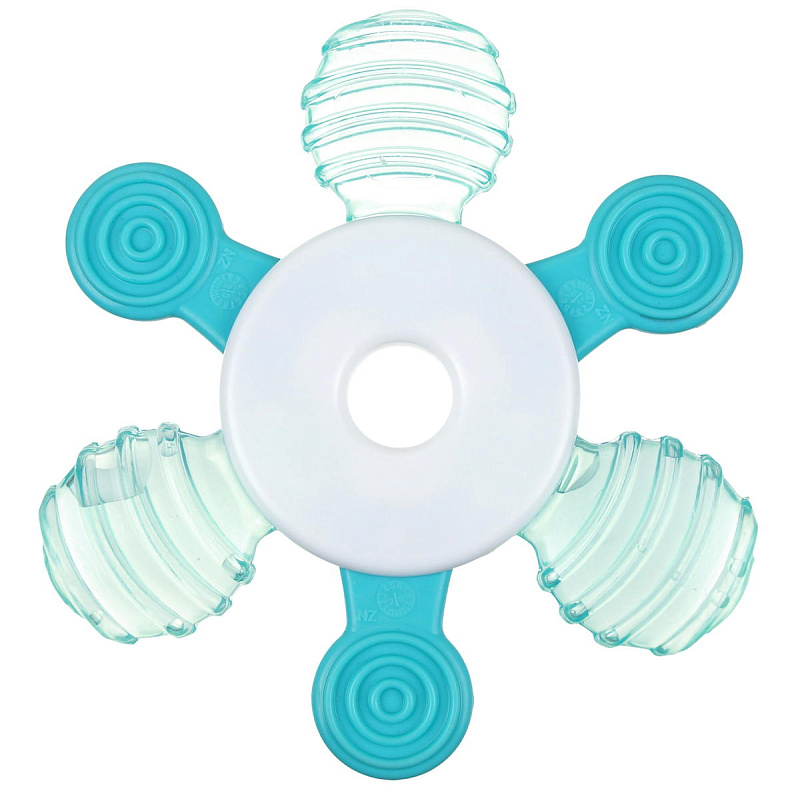 Силиконовые вставки внутри заполнены дистиллированной водой, которая обеспечивает анестезирующий эффект, если предварительно охладить прорезыватель в холодильнике (не более чем на час);
