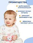 Способствует развитию у малыша хватательного рефлекса и мелкой моторики. С его помощью малыш будет учиться держать и перекладывать прорезыватель из одной ладони в другую.