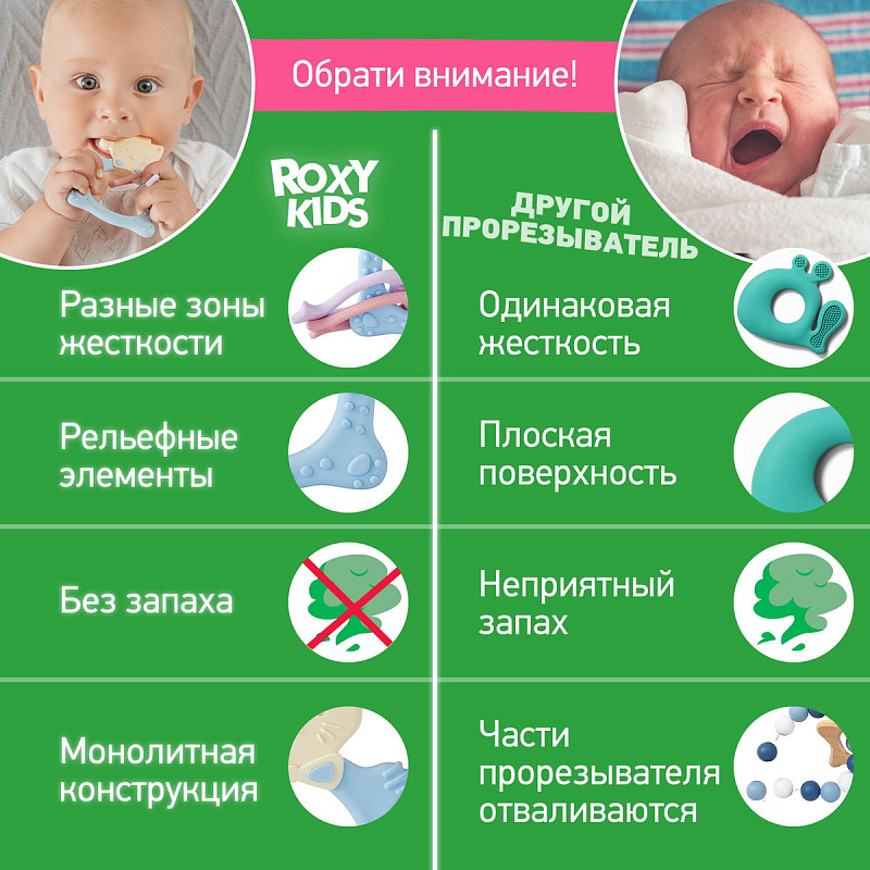 Материал изготовленияпрорезыватель – термоэластопласт, полипропилен, держатель – полиэстер, АБС-пластик