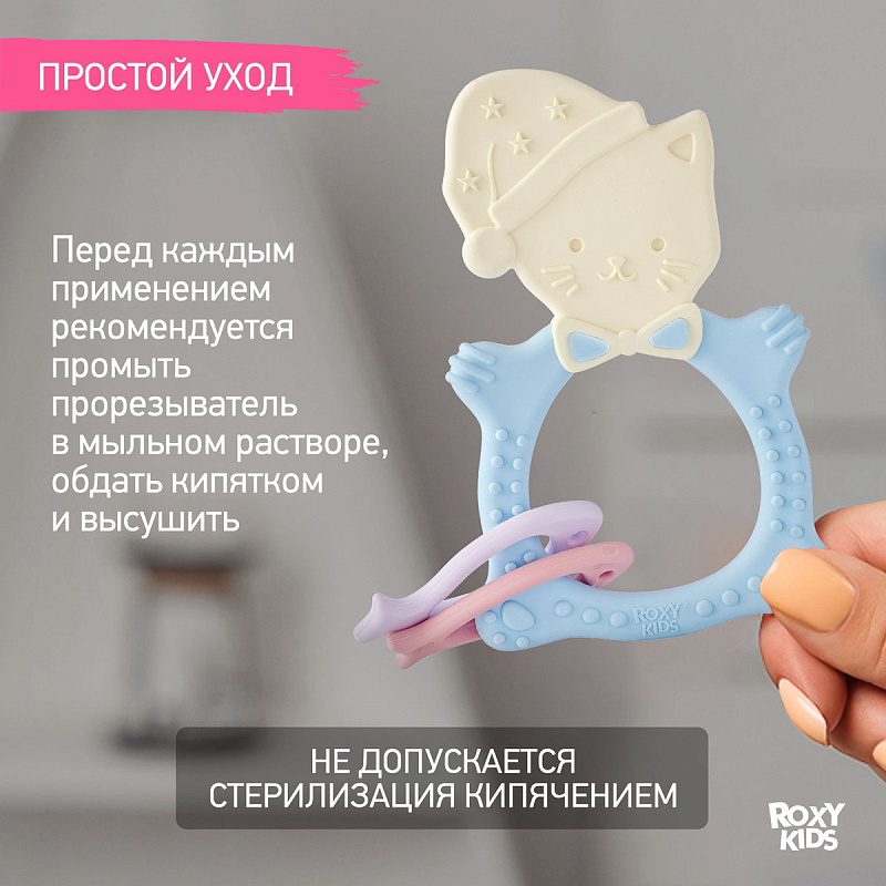 Прорезыватель Roxy-Kids Meow Teether с держателем RMT-001SC голубой