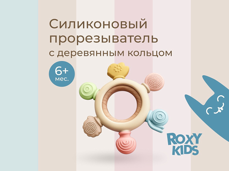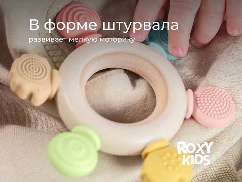 Прорезыватель Roxy-Kids силиконовый, с кольцом из бука RWDN-001 Штурвал