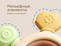 Силиконовый прорезыватель с деревянным кольцом в форме штурвала. Создан для бережной заботы о малыше в период прорезывания зубов. Шесть разных рельефов бережно массируют раздраженные десны, снимают зуд и дискомфорт. Форма штурвала развивает мелкую моторику и знакомит малыша с новыми текстурами. Прорезыватель выполнен из безопасных гипоаллергенных материалов — мягкого пищевого силикона и натурального бука.