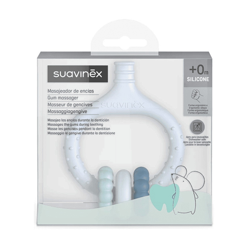 Прорезыватель для зубов Suavinex изготовлен из мягкого, безопасного для малышей силикона с рельефной поверхностью. Он удобно лежит в руке и помогает снизить дискомфорт во время прорезывания зубов.