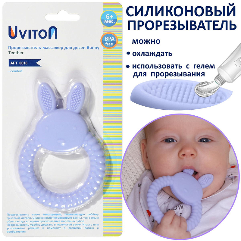 Прорезывание зубов - это естественный этап развития ребенка, который, однако, может сопровождаться неприятными ощущениями, дискомфортом и даже болью. В эти моменты малыш может быть капризным и раздражительным. Чтобы помочь ребенку пережить этот период и облегчить болезненное состояние, можно использовать силиконовый прорезыватель Uviton Bunny Elly.