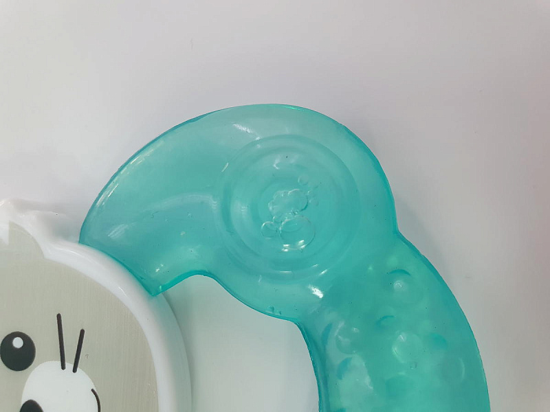Прорезыватель заполнен дистиллированной водой, которая обеспечивает анестезирующий эффект, если предварительно охладить прорезыватель в холодильнике (не более часа.)