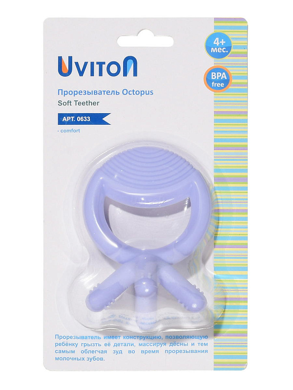 Прорезыватель силиконовый от Uviton поможет малышу в период прорезывания первых зубов. С ним легче справится с неприятными ощущениями и дискомфортом. В эти моменты ребенок может быть особенно капризным и раздражительным.