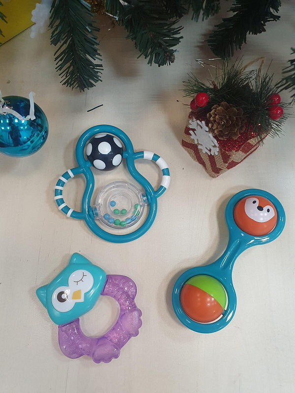 Совмещает в себе функцию прорезывателя и игрушки-погремушки;