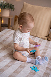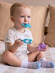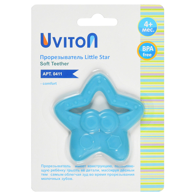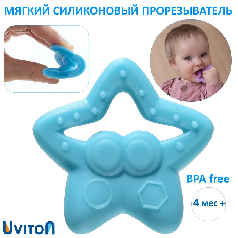 Прорезыватель силиконовый Star от Uviton поможет малышу в период прорезывания первых зубов. С ним легче справится с неприятными ощущениями и дискомфортом. В эти моменты малыш может быть особенно капризным и раздражительным. Чтобы помочь ребенку пережить этот период и облегчить болезненное состояние, прорезыватель допускается использовать с зубным гелем. Прорезыватель мягкий из пищевого силикона, поможет унять зуд в воспаленных деснах не нанося им вреда. В период облегчения с жирафиком так интересно играть и изучать цвета, он будет дарить спокойствие малышу. Прорезыватель отлично подходит для самых маленьких малышей, у которых только начинаются резаться зубки.