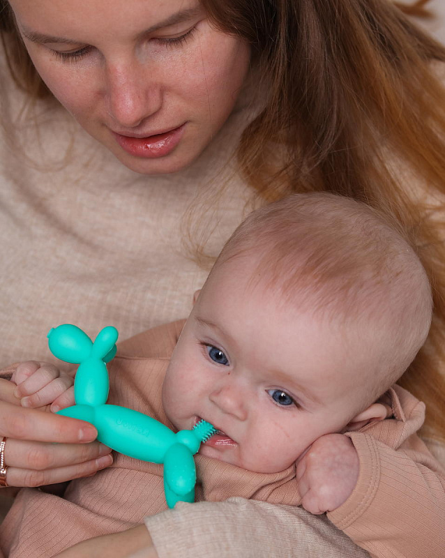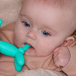 Щеточка на хвостике позволяют нанести успокаивающий гель при прорезывании зубов и распределить его по деснам, не нанося им вреда. Рельеф на лапках и щеточке обеспечивает бережный массаж десен. Ребенок сам выбирает, какой элемент ему нравится грызть больше. Прорезыватель можно охлаждать в холодильнике.