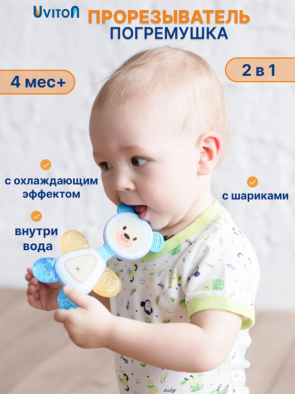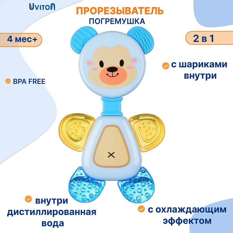 Процесс прорезывания и роста первых зубов является очень сложным для малыша. Чтобы помочь ребенку пережить этот период, мы предлагаем новинку от бренда Uviton – прорезыватель с погремушкой Little bear.