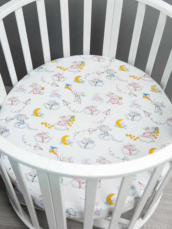 Простыня AmaroBaby на резинке круглая поплин 75х75 см мышата в облаках