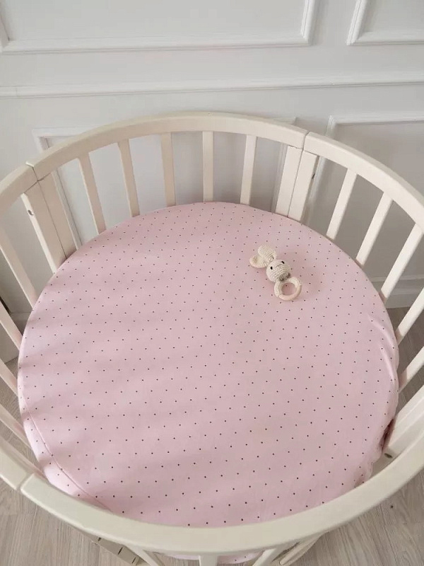 Простыня Lappetti на резинке для круглой кровати 9004к горох на розовом