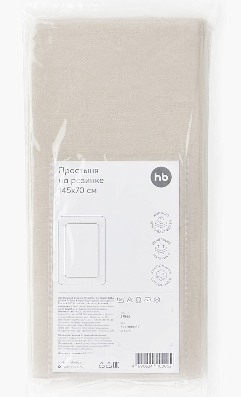 Простыня на резинке Happy Baby 145х70 см 87544 крем