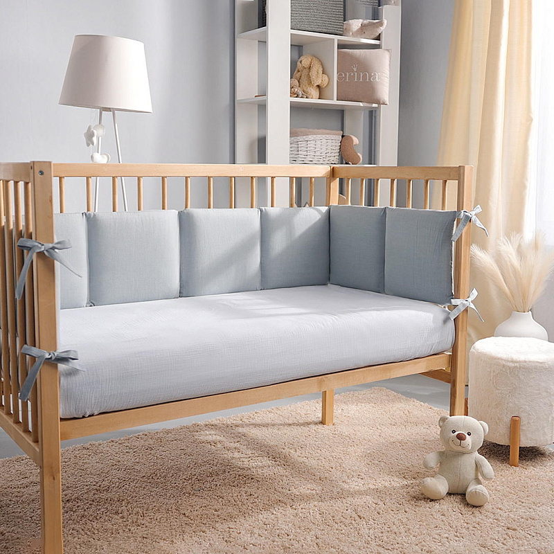 Муслиновая натяжная простыня на резинке — красивое и практичное дополнение к вашему постельному комплекту. Натуральный хлопок экологичен и безопасен для ребенка, простыня деликатно касается кожи малыша нежной мягкой поверхностью.