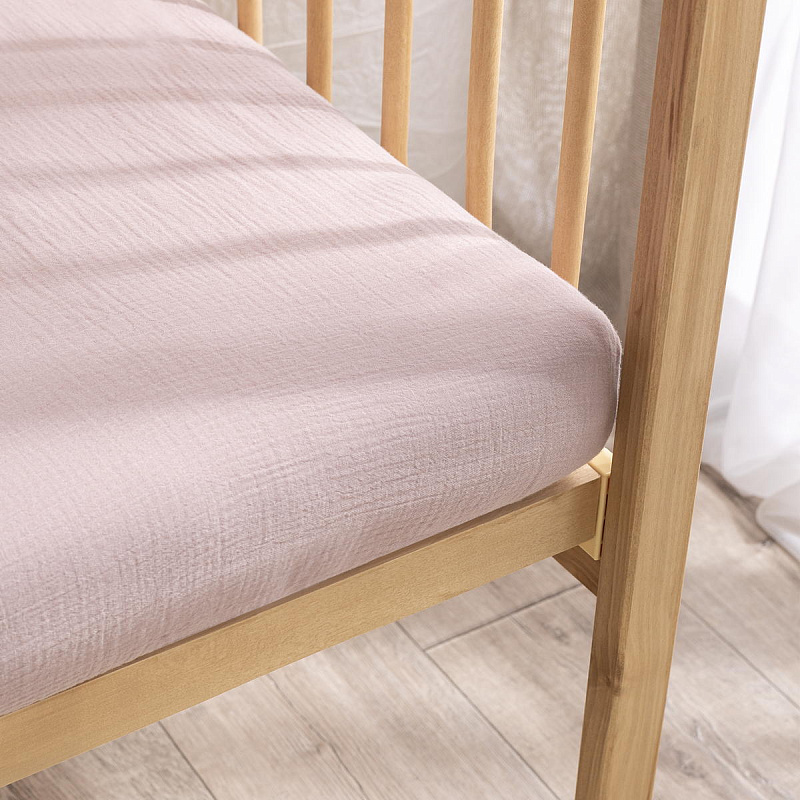 Муслиновая натяжная простыня на резинке — красивое и практичное дополнение к вашему постельному комплекту. Натуральный хлопок экологичен и безопасен для ребенка, простыня деликатно касается кожи малыша нежной мягкой поверхностью.