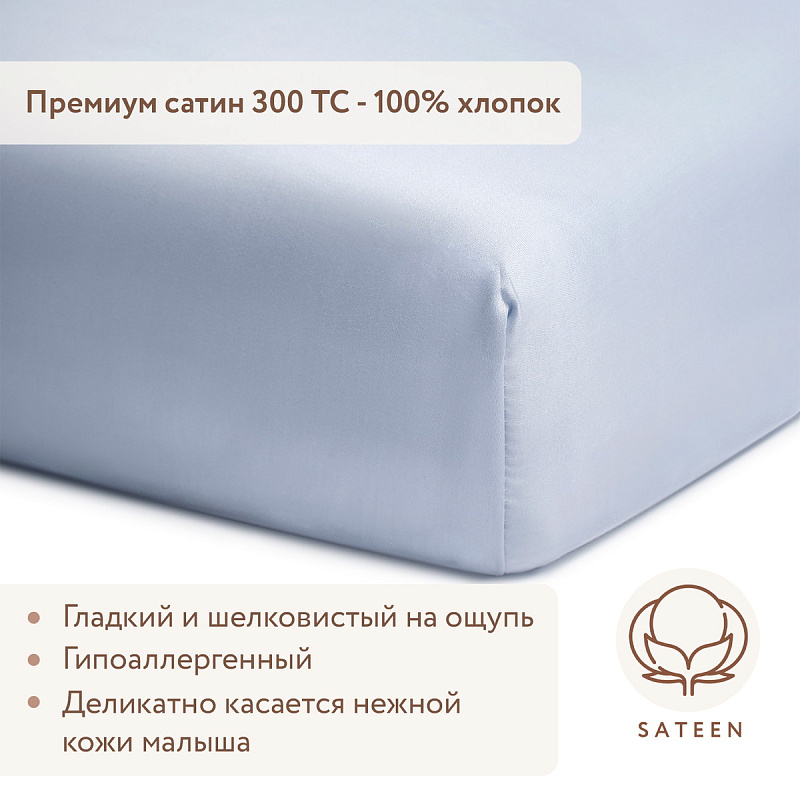 Сатиновая простыня на резинке — красивое и практичное дополнение к вашему постельному комплекту. Натуральный хлопок экологичен и безопасен для ребенка, простыня деликатно касается кожи малыша нежной шелковистой поверхностью.