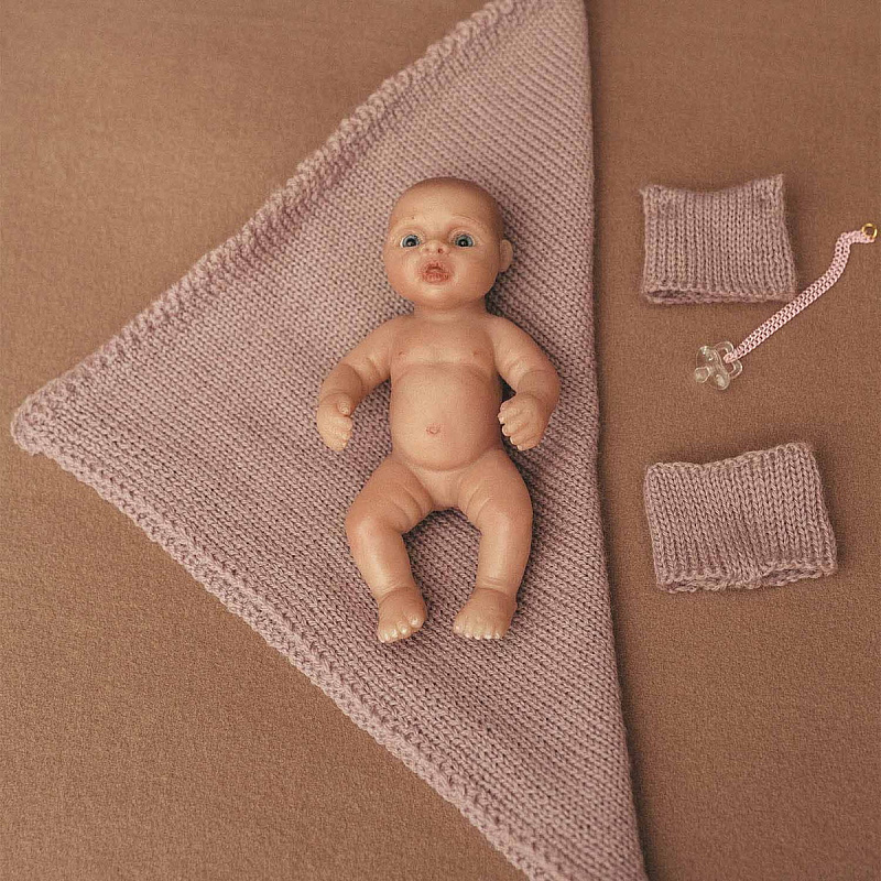 Крошечный пупс с тёплой улыбкой умещается на ладони — так и тянет укутать пледом и устроить мини-колыбель. Его формат отлично подходит для игр в дороге и трогательных фотосессий.