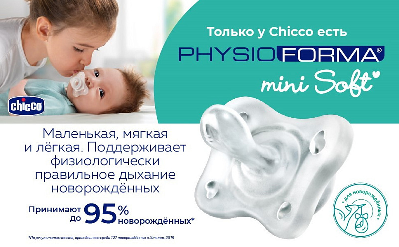 Соска Chicco PhysioForma Minisoft была специально разработана для новорождённых.