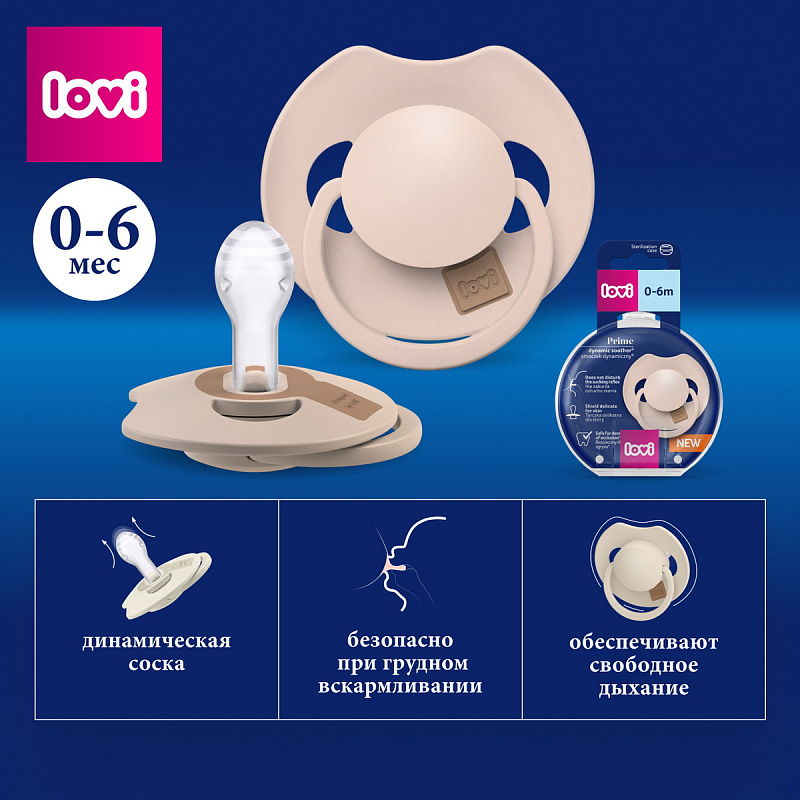 Пустышка динамическая Lovi Prime силиконовая 0-6 мес 34/404 бежевый