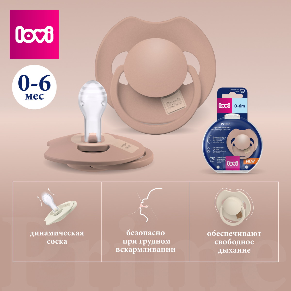 Пустышка динамическая Lovi Prime силиконовая 0-6 мес 34/405 румяновый