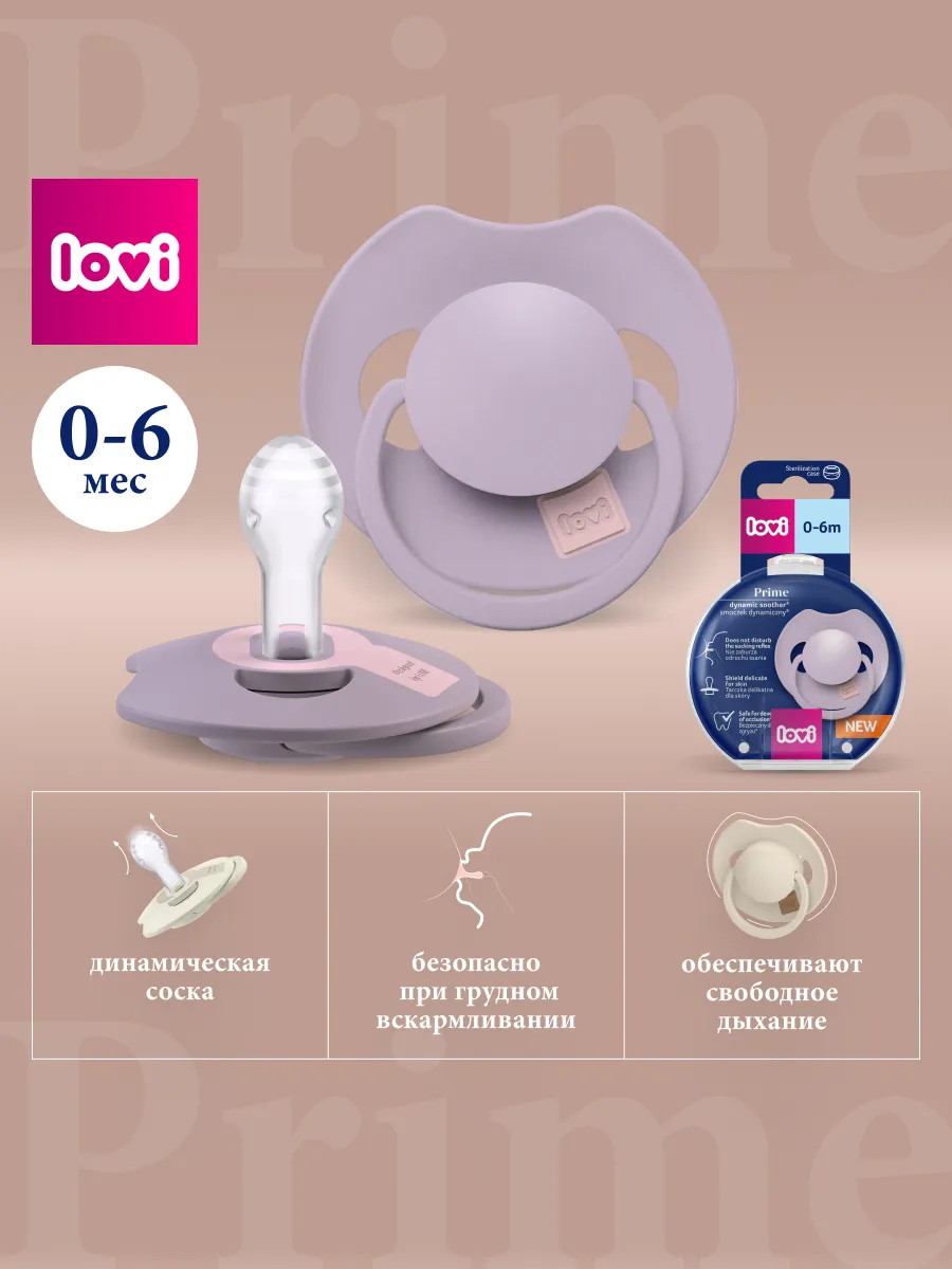 Пустышка динамическая Lovi Prime силиконовая 0-6 мес 34/421 фиалковый