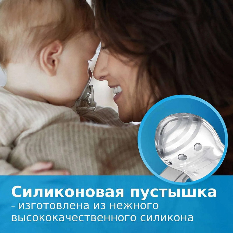 Изготовлена из гетерогенного силиконового слоя, который обеспечивает сжимание и расширение соски при сосательных движениях ребенка;
