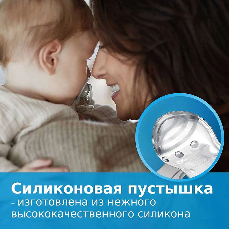 Изготовлена из гетерогенного силиконового слоя, который обеспечивает сжимание и расширение соски при сосательных движениях ребенка;