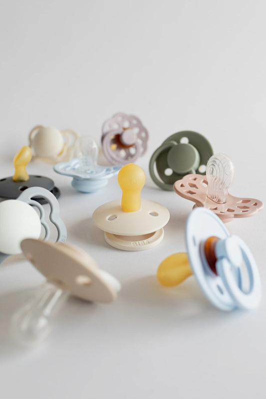 Пустышки BIBSизготавливаются из экологичных, на 100% безопасных материалов. Сосок у пустышки сделан из натурального каучука (латекса), а защитная накладка (шилдик) – из полипропилена.