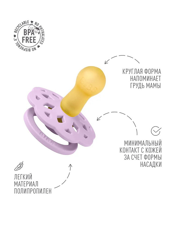 Пустышки BIBSизготавливаются из экологичных, на 100% безопасных материалов. Сосок у пустышки сделан из натурального каучука (латекса), а защитная накладка (шилдик) – из полипропилена.
