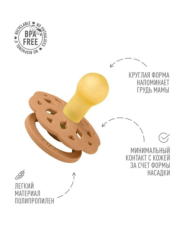 Пустышки BIBSизготавливаются из экологичных, на 100% безопасных материалов. Сосок у пустышки сделан из натурального каучука (латекса), а защитная накладка (шилдик) – из полипропилена.