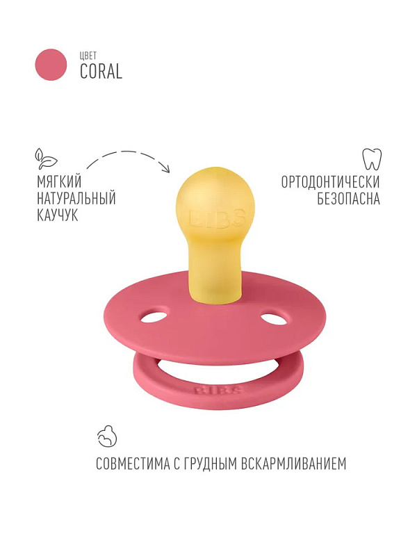 Пустышка латексная Bibs Colour, 0+ 100262 Coral