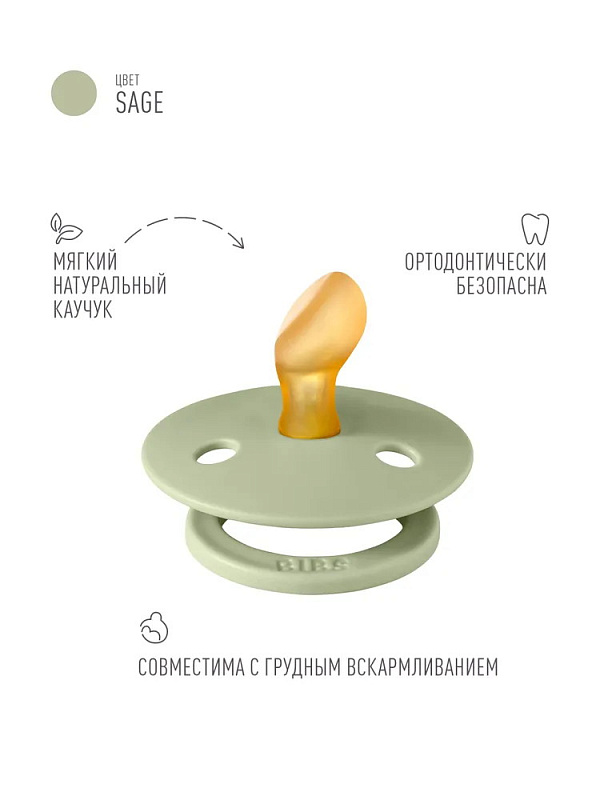 Пустышка латексная Bibs Colour Anatomical, 0+ 111250 Sage