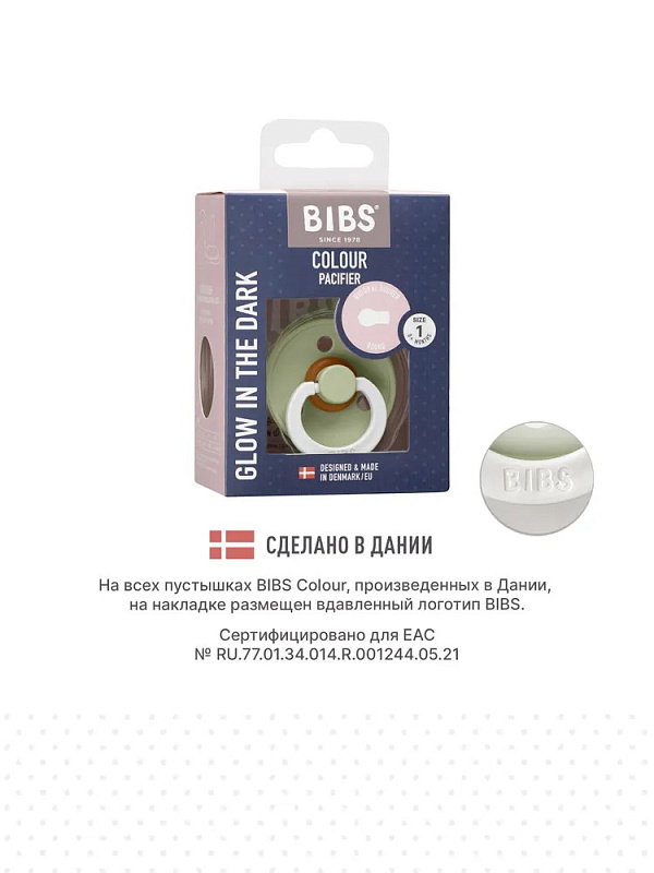 Пустышка Colour – это культовая пустышка BIBS, представленная на рынке с 1978 года. Колечко пустышки Colour Glow излучает мягкий свет и её легко найти в тёмной комнате. Достаточно двух минут под лампой, чтобы «зарядить» колечко. Свечение ему придают кристаллы люминофоров.