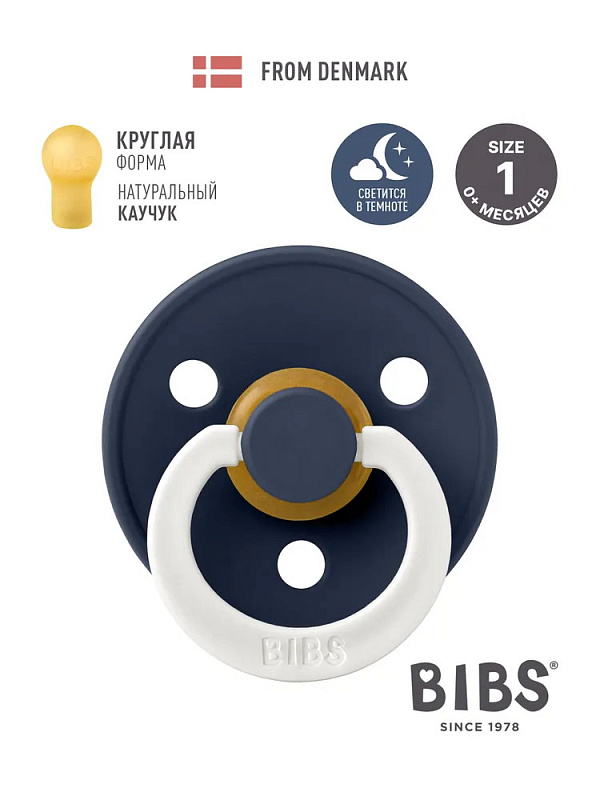 Пустышка латексная Bibs Colour Glow ночная, 0+ 100331 Deep Space